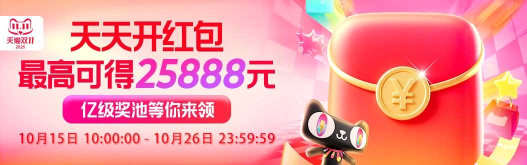 2025淘宝天猫双11超级红包来了!最高25888元!无门槛红包可以在全淘宝、天猫无门槛抵扣使用,如果遇到奖池加码,不占每天领取名额,可领多次。