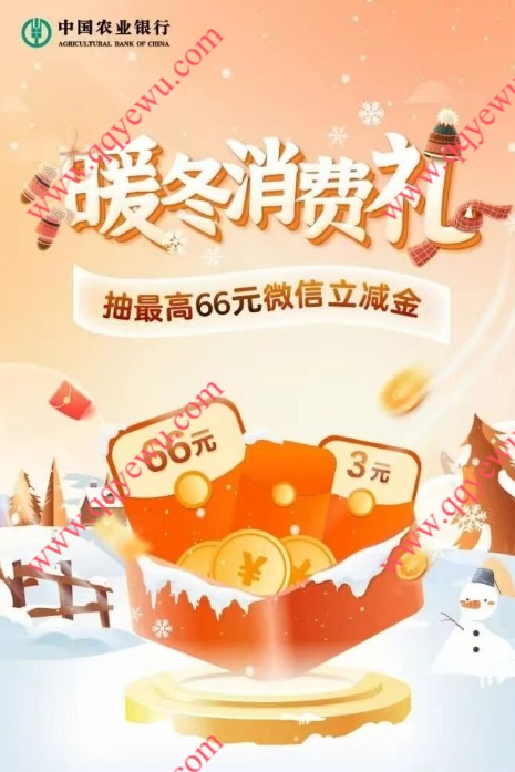 农行暖冬消费礼每天抽1-66元微信立减金,如果没中次日再去抽奖。
