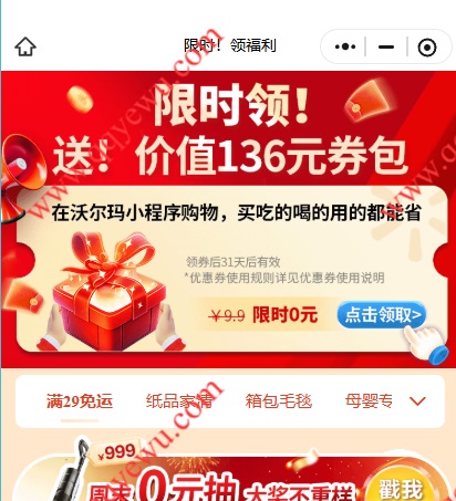 限时免费领取1个月沃尔玛省钱月卡,价值136元券包,之前没领过的有需看看