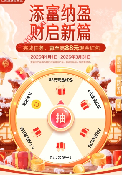 建行新春建面礼2个活动抽最高88元现金红包,报名后完成任务即可抽奖,每个活动都可以抽2次。