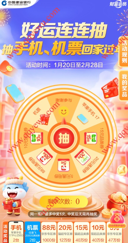 建行好运连连抽抽京东券,猫超券等