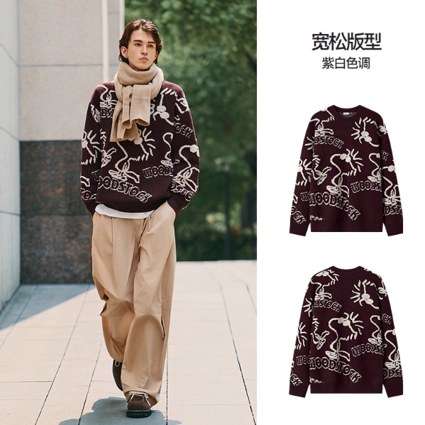 【森马】撞色宽松套头提花针织衫