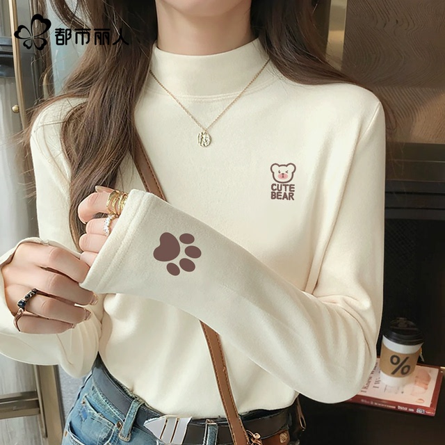 官旗!都市丽人双面绒打底衫加绒保暖T恤
